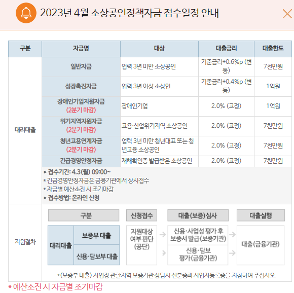 <23년 2분기 정책자금 일정 참고>