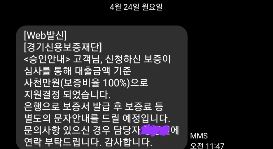 그리고 한시간 후 바로 문자를 받았다.