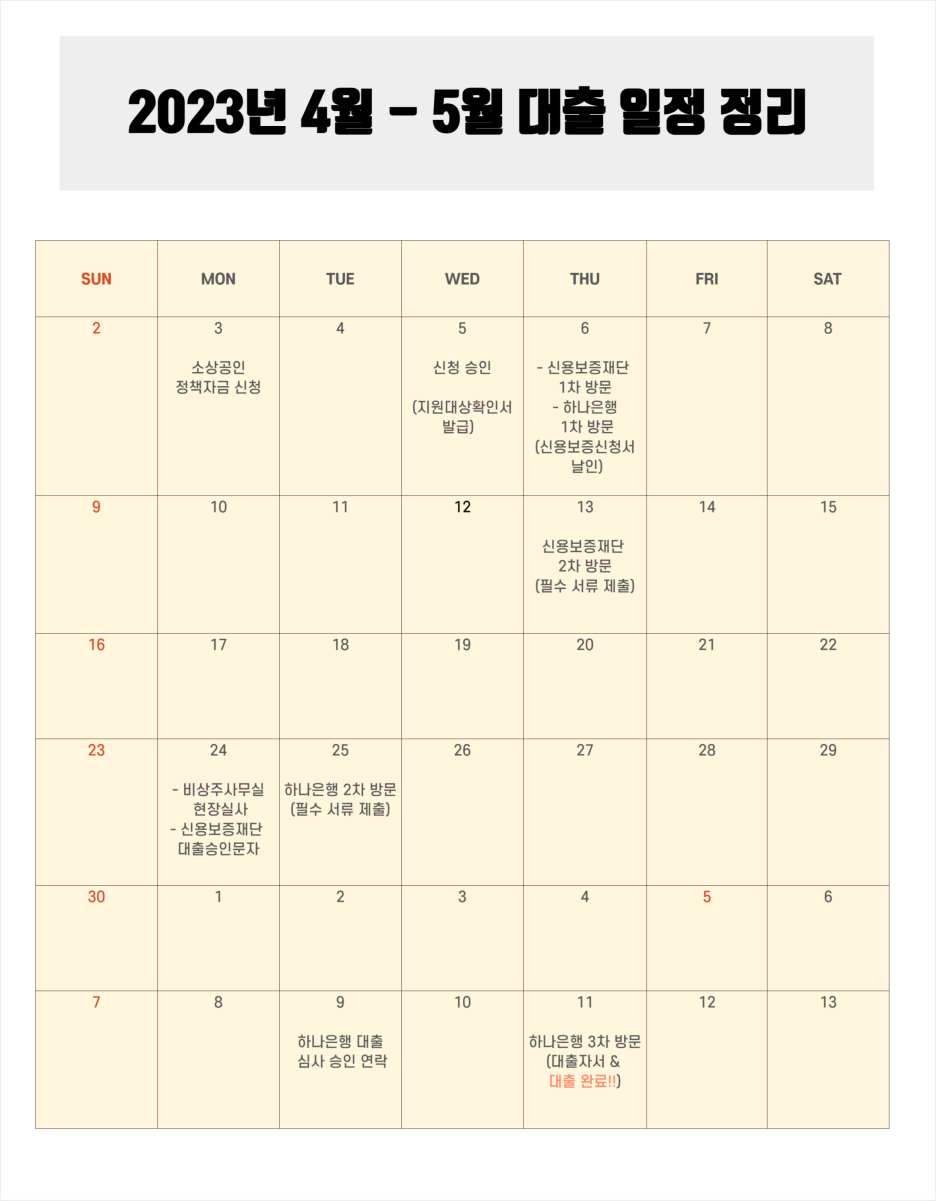 아래 4-5월 대출 준비 일정을 보기 쉽게 정리하였으니