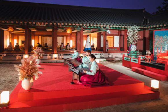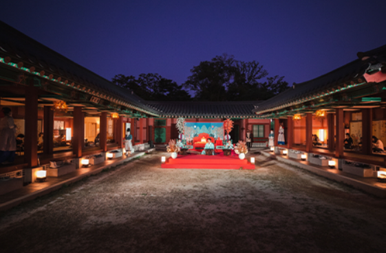 궁궐의 부업인 '소주방'에 들러 조선의 왕이 먹던 일상식인 12첩 반상을 현대적으로 재해석한 '도슭수라상'을 맛보게 됩니다. 맛있는 수라상을 먹는 동안 국악공연이 함께 펼쳐져 맛과 멋의 풍류로 가득한 밤이 될 것입니다.
