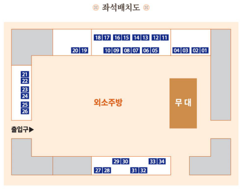 외소주방 배치된 좌석에 앉아서 식사와 공연관람을 함께 진행합니다.