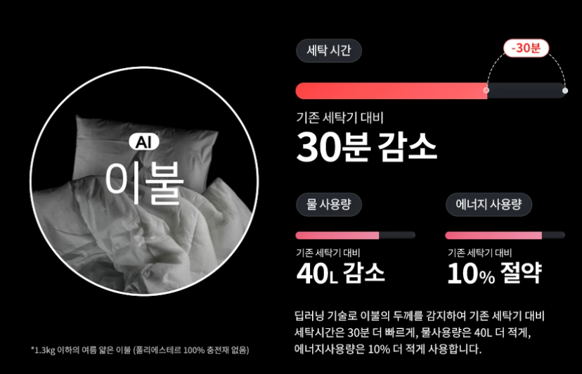 예를 들어 이불의 무게와 두께에 따라 세탁방법을 다르게 합니다.(두께를 감지)