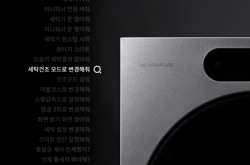 또한 세탁 코스 설정, 세탁 결과 브리핑까지 음성 하나면 알아서 세탁과 건조를 진행해줍니다.