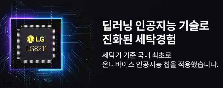 인공지능 칩 적용으로 옷감 상태와 세탁기 사용 환경을 분석하고 세탁물을 골고루 분산시켜 탈수를 해줍니다.